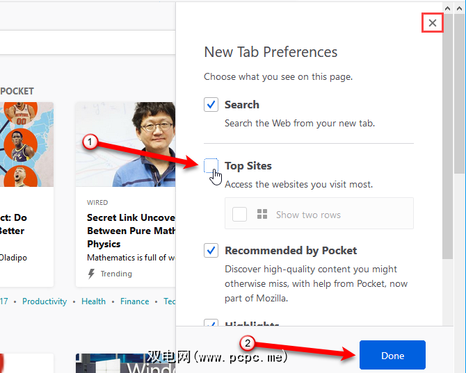 如果您不想看到某些部分在Firefox的“新标签" 页面上,您可以将其隐藏。