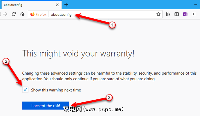要恢复为经典的“新建"标签页面,请打开Firefox,输入 about:config ,然后按 Enter 。