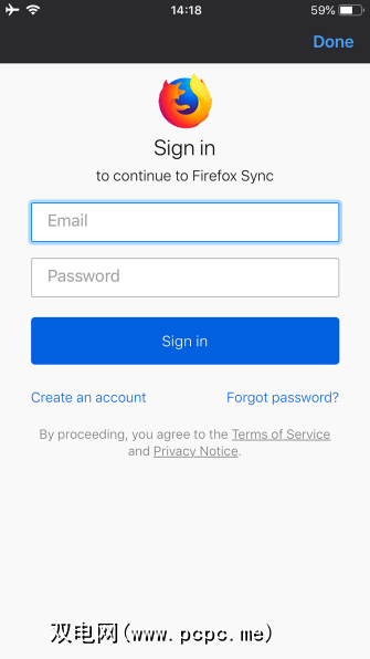安装了移动版本后,请点击菜单按钮(然后点击设置(在Android上),然后选择登录以进行同步。您需要输入Firefox帐户凭据才能将其添加到您的帐户。