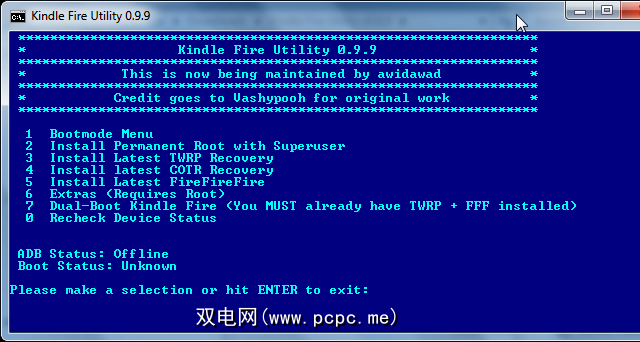 开始下载打算使用的ROM,以做好准备。我们将使用上面链接的AOSP JELLY BEAN 4.2.2_r1继续本教程。将其下载到计算机上时,连接Kindle Fire并运行Kindle Fire Utility,选择选项 5 Install Latest FireFireFire 。