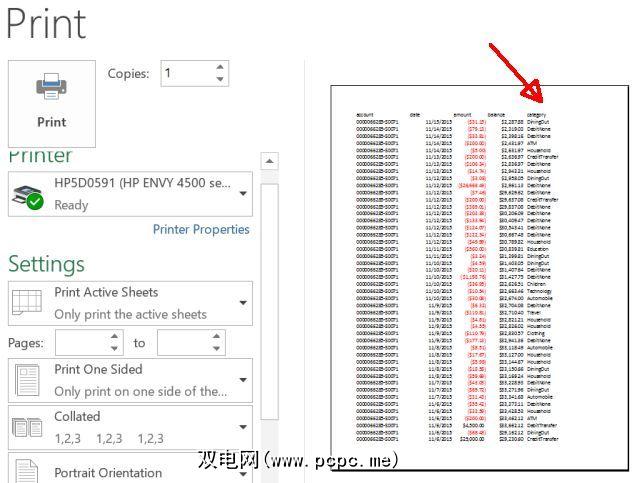 从文件中选择 Print 菜单,您会在打印预览中看到并非所有列都在预览中。
