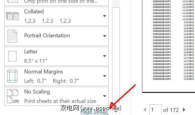 向下滚动到打印菜单的底部,然后点击页面设置…链接。