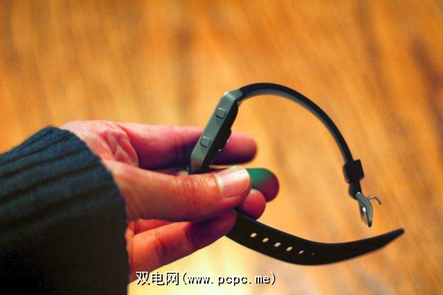 默认腕带是一条简单的硅橡胶表带,并使用经典的手表式锁定机制进行了连接。