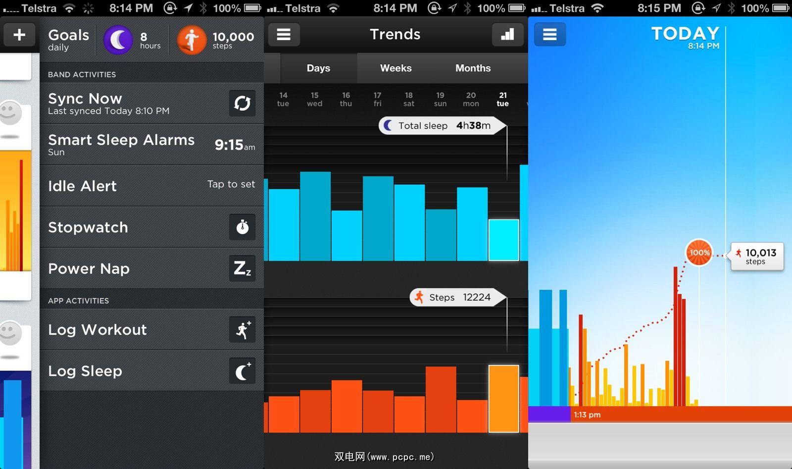 使用UP的移动应用程序非常令人满意,因为它提供了以下功能:按分钟的活动/睡眠图,因此我可以轻松查看一天中什么时候最活跃。缺点:所有这些可爱的数据都是回顾性的。 UP需要手动插入智能手机才能进行同步,并且无法在乐队上显示您的日常进度。因此,在同步之前,您不会知道自己是否达到了每日目标。尽管如此,Jawbone应用仍然非常棒,因为您可以从中学到很多东西。它设法以最相关的形式显示您的数据。以趋势为例,该应用程序基本上以条形图的形式显示您的整个生活:您的睡眠方式,身体活动程度。