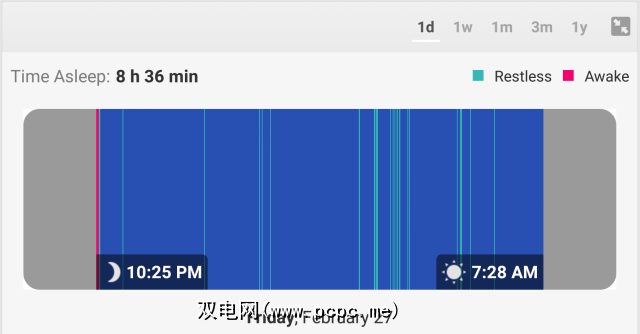 除了睡眠跟踪,FitBit Surge还支持多种运动。它的睡眠跟踪统计信息涵盖了许多真正有限的类别-睡眠和运动。如果用户在睡觉时移动,则由Surge记录。不幸的是,这种方法不能确定可以确定用户睡眠质量的其他健身追踪器。例如,基础峰可以以某种程度的准确性确定不同种类的睡眠,例如REM,浅睡或深度睡眠。 Surge只报告睡眠期间的运动,这是没有用的,因为在夜间进行抛掷和转弯是正常的。我需要知道的是我花了多少时间在REM中。