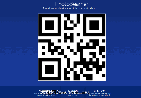 在您朋友计算机的网络浏览器中,访问www.photobeamer.com并同时在手机上启动该应用程序。将提示您捕获网站上显示的QR码,这样做将打开手机的图片库,使您可以在临时会话中传输照片!
