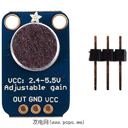 Raspberry Pi可用的另一个组件是Adafruit驻极体麦克风放大器,这是一个微型麦克风,可通过廉价的模拟输入进行连接(售价约一美元)和一块面包板。