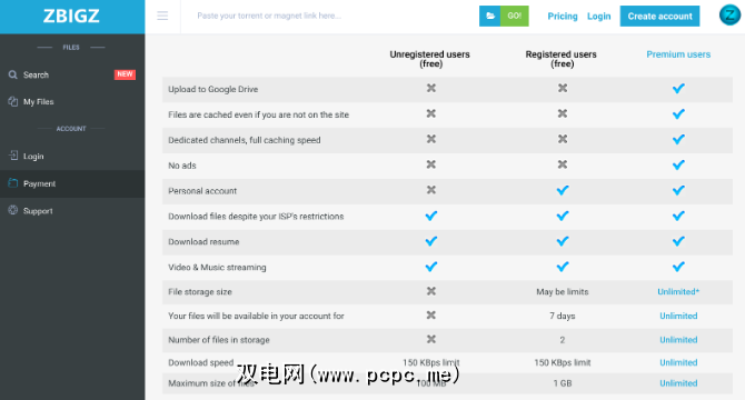 种子箱通常是付费的,但是有一个流行的免费应用程序ZbigZ。免费帐户具有一些限制,例如150 KBps的下载限制,最大1GB的文件大小,两个文件随时存储以及7天的有效期。