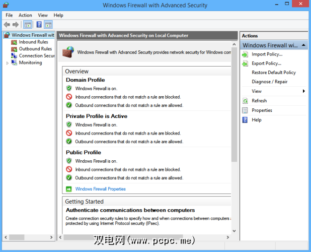 Windows 8防火墙的运行方式与以前的版本基本相同。程序的入站连接将被阻止,除非它们在允许的列表中;而出站连接如果不符合规则,则不会被阻止。您还具有防火墙的公共和专用配置文件,并且可以精确地控制哪个程序可以在专用网络(而不是更广泛的Internet)上进行通信。