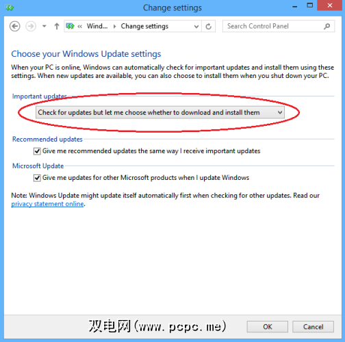 要打开自动更新,请转到控制面板,然后点击 Windows Update 。从左侧列表中选择更改设置,然后从下拉菜单中选择自动安装更新。有关更多信息,请参阅我们的“您需要了解的所有有关Windows Update的指南"。