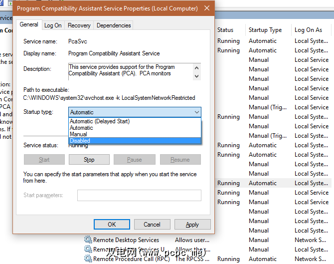 新手用户应保持启用此功能,但以生产大量商品而闻名误报率。如果要禁用Assistant,只需几个步骤即可完成。在“开始"菜单中键入 services 以打开该实用程序,然后寻找 Program Compatibility Assistant 。