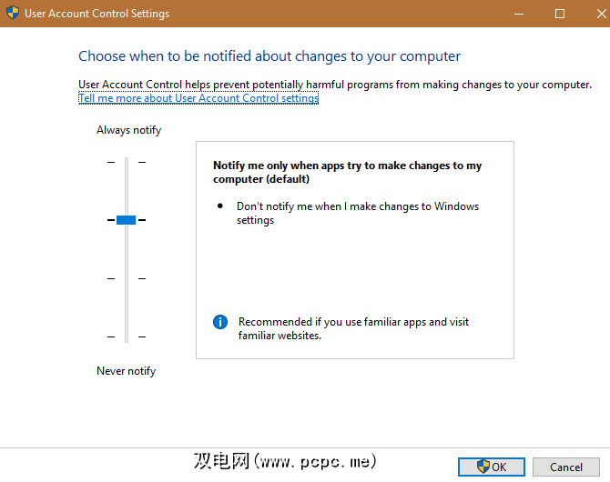 我们建议您在UAC安全性的中间两个级别之间进行选择,并创建此白名单,这将使UAC摆脱您不需要的地方,同时仍然可以保护UAC的安全,因为它旨在