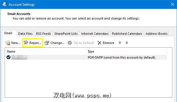 在下一个屏幕上,找到您的帐户,然后单击修复。