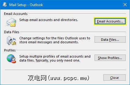 这将启动邮件设置窗口。单击标有电子邮件帐户的框。