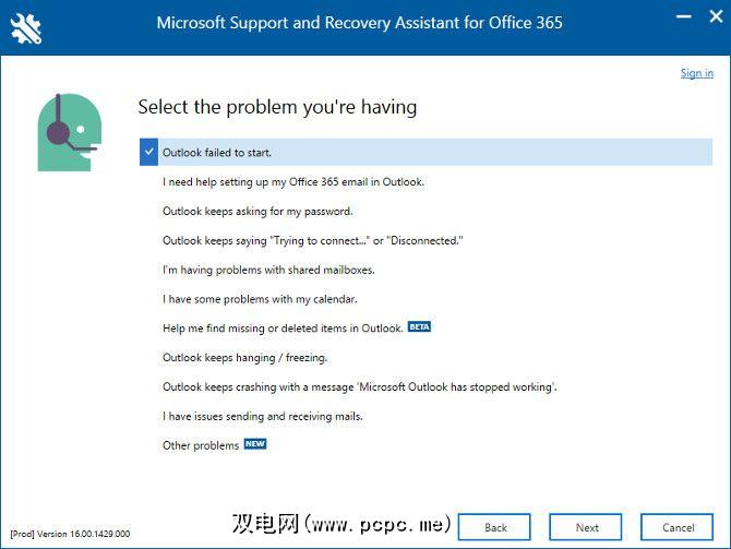 支持和恢复助手可从Outlook支持中心获得,它可以在Outlook停止响应时提供帮助,当客户端无法接收电子邮件,共享日历和邮箱停止工作,程序不断询问您的密码以及程序声称“试图连接"或抱怨“断开连接"时。