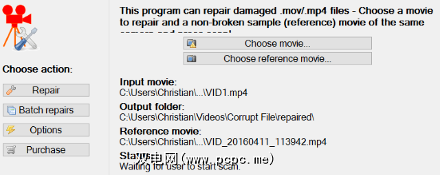 运行该应用程序并选择您的语言,然后在选择电影中浏览损坏的视频文件。