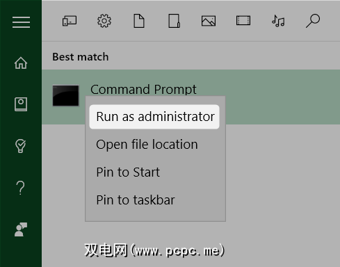 要使用SFC,请在命令行中输入 CMD 打开提升权限的命令提示符。 Windows 10搜索栏,右键单击命令,然后选择以管理员身份运行。外观如下: