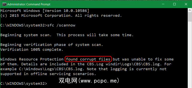 在我的第四代Intel Core i7处理器上,该过程大约需要10分钟。运行完之后,我得到以下结果,表明系统文件已损坏: