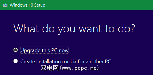 满足上述要求后,运行Windows GWX工具。然后,用户接受许可条款。出现提示时,选择立即升级此PC ,然后选择下一步。