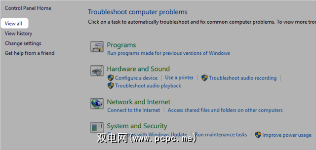 “疑难解答"窗口打开后,您可能想要选择< strong>从左侧窗格中查看全部。查看全部可了解Windows 10故障排除程序的全部范围,其中涵盖了大多数Windows子系统,例如声音,打印机和网络(所有非常麻烦的子系统)。甚至还有即将推出的Windows激活疑难解答(我们的Windows激活指南)。另外,如果您仅遇到声音问题,则可以从此菜单中选择一种进行音频故障排除的选项。