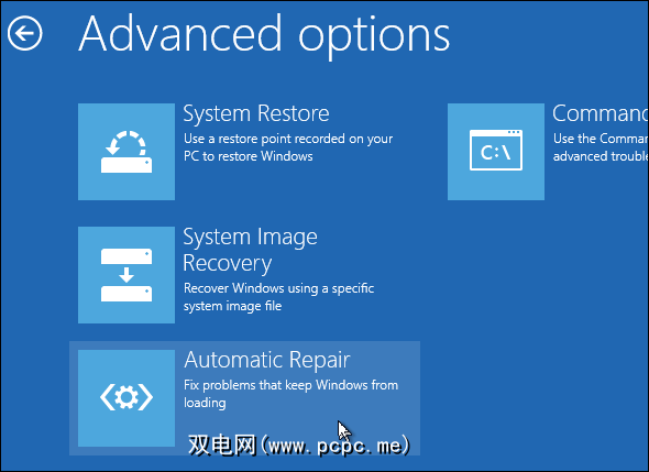 您将看到一个菜单选项;选择问题排查,然后选择高级选项。从此处的高级选项菜单中,选择自动修复。让该过程完成,然后在完成后重新启动计算机。