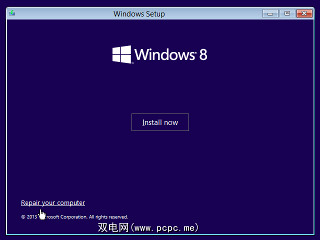 从Windows 10安装磁盘启动后,请等待,直到看到 Windows安装程序屏幕。确认您的语言选项,然后单击下一步。当您看到立即安装屏幕时,请点击左下方的修复计算机链接。