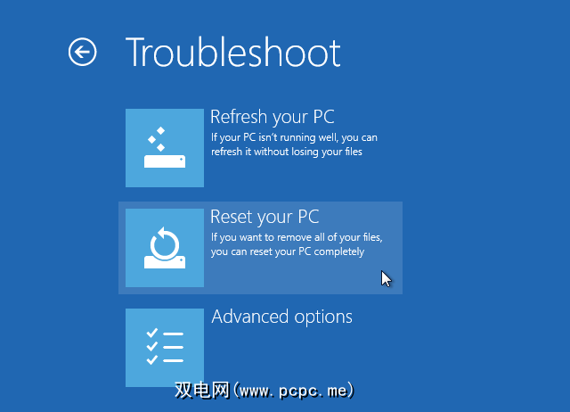 在高级选项>系统还原下,您会找到重置此PC 选项。 。请按照我们的指南重设Windows 10,以获取更多信息。