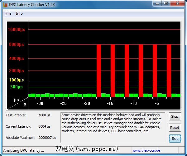 DPC延迟检查器旨在通过检查系统是否可以正确处理实时音频或视频流,来分析内核模式设备驱动程序的延迟。这是显示问题的快速方法,该工具无需安装。