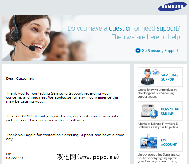 这是我们不支持的OEM SSD,没有保修,并且无法与软件配套使用。