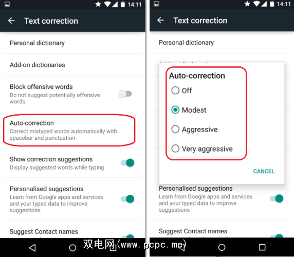 在完全禁用自动更正之前,请务必了解Google默认键盘具有不同的级别严重程度。如果您在使用该功能时遇到困难,则可以将其设置为“非常积极"或“积极"。对于大多数人来说,适度就足够了。