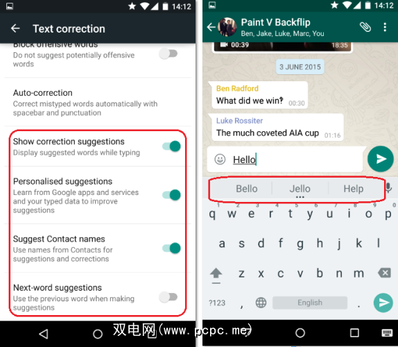 单词建议可大致分为三类–纠正建议(您可以在其中如果输入错误的单词,将看到列表更正),个性化建议(Google会在电话中监控您对键盘的使用情况,以了解您经常使用的单词和短语)以及下一个字词建议(Google会在其中预测其含义)认为您的下一个单词将是避免您输入它。)