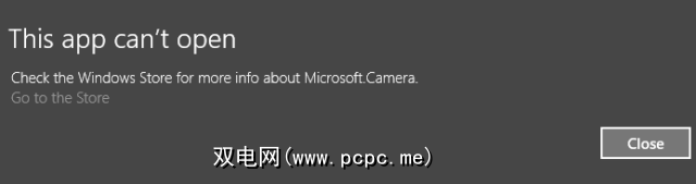 左键单击时,会向用户显示屏幕消息“此应用无法打开"。