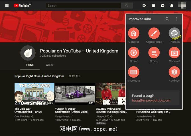 列表中的下一个扩展名为“改进YouTube",其功能恰如其名。它具有个性化YouTube桌面网站的所有功能。您可以按自己的喜好移动块,沟渠或调整它们的各种属性。例如,播放器的大小。