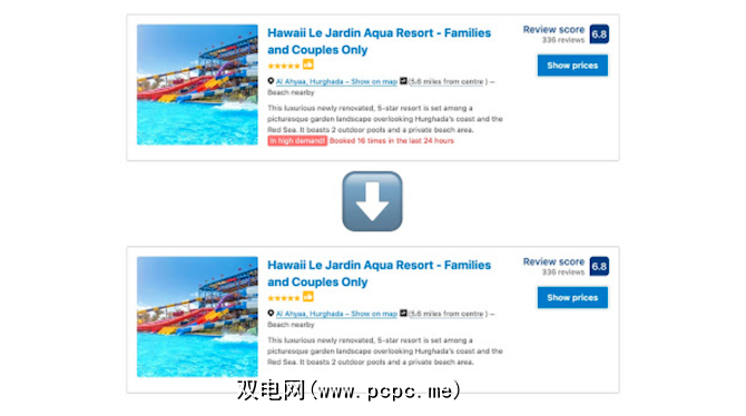 与Amazon Lite不同,ShutUpBookingCom不会神奇地改造Booking.com。相反,它修补了许多微小而棘手的设计选择。令人不安的是持续不断的警报,它会告诉您是否对某项特定物业有很高的要求。这些旨在迫使您做出急于做出的决定。