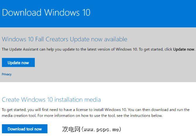 您可能知道,Windows 10每六个月进行一次重大更新。首次启动时,您的计算机不会获得这些新版本,例如Fall Creators Update。如果您希望立即获得它,请访问Windows 10下载页面,然后单击立即更新按钮。