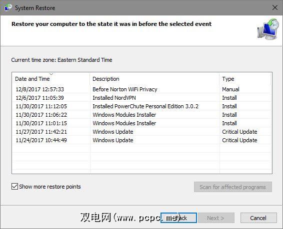 如果您尚未创建恢复驱动器并且不想重设PC,则还原的最佳选择就是还原点。请按照以下步骤还原Windows: