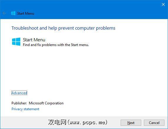 “开始"菜单问题排查工具确实很难使用。下载后,将其打开并单击下一步按钮,它将开始对系统进行扫描。完成后,请重新启动PC,并希望您的“开始菜单"的麻烦将结束。