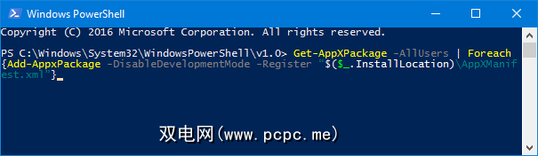 以下命令将重新安装并重新注册所有用户帐户中的所有应用程序。不过请注意,它不会重新安装您先前删除的应用程序。
