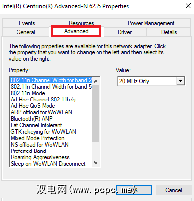 注意:并非所有网络适配器都可以访问“国家和地区"属性