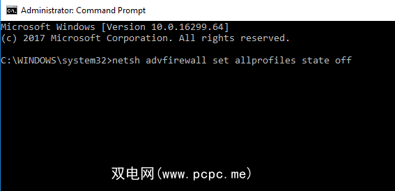 要重新打开防火墙,请返回“命令提示符"并键入 netsh advfirewall将所有配置文件的状态设置为。