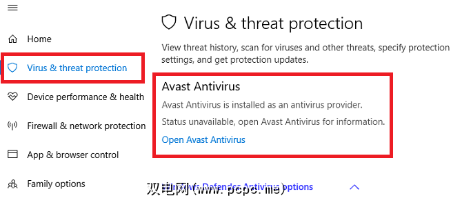打开应用后,展开左侧面板,然后点击< strong>病毒和威胁防护。它将告诉您哪些应用程序处于活动状态,并为您提供应用程序界面的快捷方式。