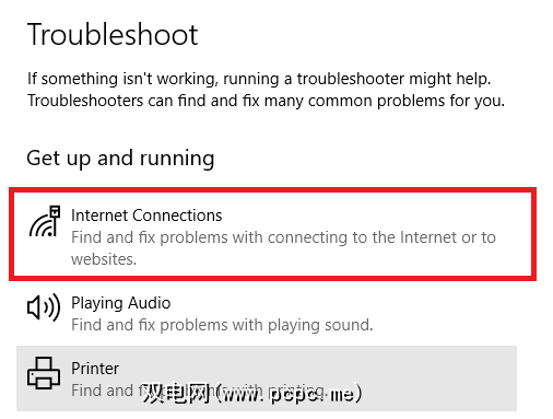 首先,请尝试运行Windows的本机网络故障排除工具。您可以在设置>更新和安全>故障排除> Internet连接中找到它。
