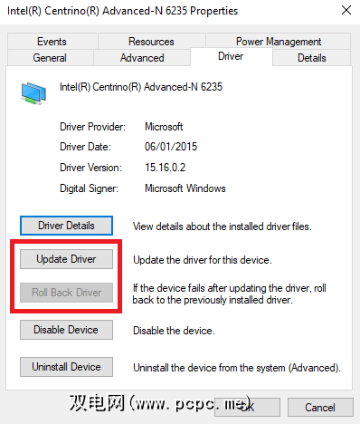 我们已经在本文前面解释了如何删除并重新安装Wi-Fi驱动程序,但是如果您遇到以下情况,您还可以尝试其他几个步骤: Windows 10上存在Wi-Fi驱动程序问题。即,您可以尝试更新驱动程序或将其回滚到以前的版本。