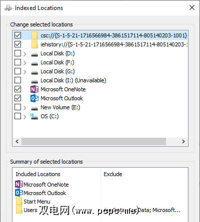 重新打开“ Windows索引选项"面板(如上一节中所示)。选择修改。现在,检查索引位置。