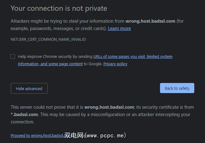 但是,如果您访问的论坛忘了续订证书,则可以进行浏览直到将其修复为止。还要注意确切的证书错误。像 ERR_CERT_COMMON_NAME_INVALID 这样的代码表示该站点的证书是用于其他域的,这可能是假冒的迹象。