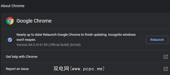 在Chrome中,打开三点式 Menu 并选择 Help> About Google Chrome 以检查更新。您还应该在再次尝试之前检查Windows Update或macOS的软件更新中的系统修补程序。