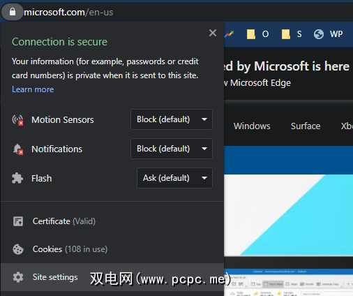 在Chrome中,按 Ctrl + Shift + Del 或转到菜单>更多工具>清除浏览数据以删除最近的数据。您还可以通过点击地址栏左侧的挂锁, i 或不安全图标,然后仅单击一个网站来清除Cookie,然后单击网站设置。在此处,您可以点击清除数据按钮以删除系统上正在使用的任何cookie。