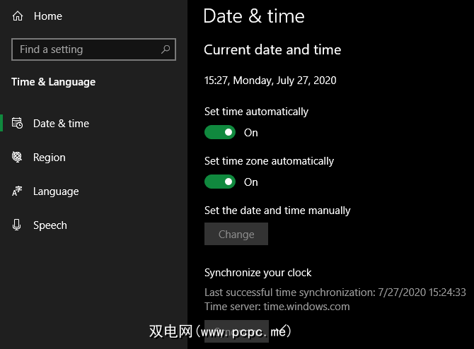 要在Windows 10上检查时钟,请转到设置>时间和语言>日期和时间。为了获得最佳效果,请启用自动设置时间和自动设置时区,这样就不必手动修复它。