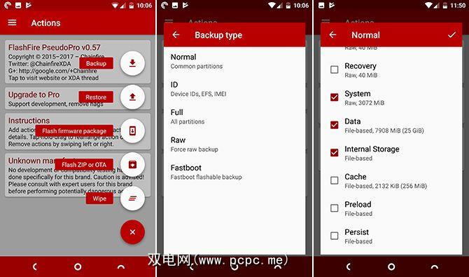 FlashFire使您可以对FlashFire进行完整备份你的设备。这些备份旨在通过应用程序还原,但还包含TWRP兼容文件,您可以在紧急情况下通过自定义恢复来还原这些文件。