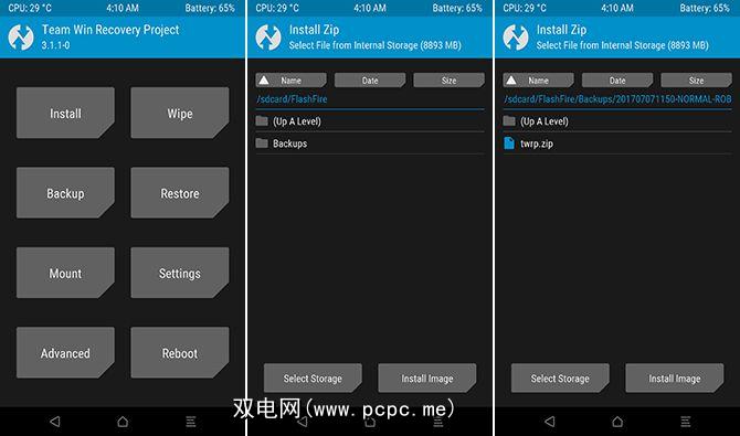 FlashFire提供了TWRP的许多相同核心功能,但它可以运行在Android本身中。您无需重启进入恢复模式-实际上,您甚至都不需要安装自定义恢复。它就像任何其他应用程序一样工作。